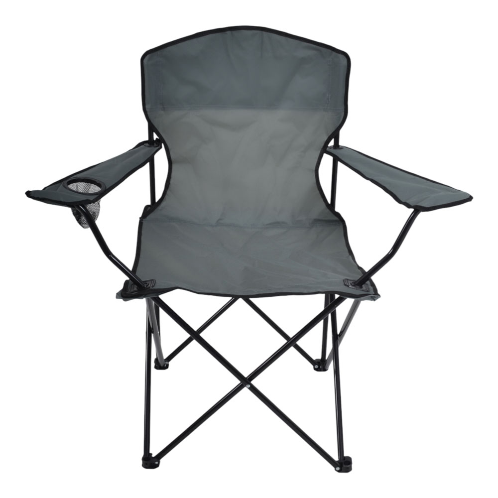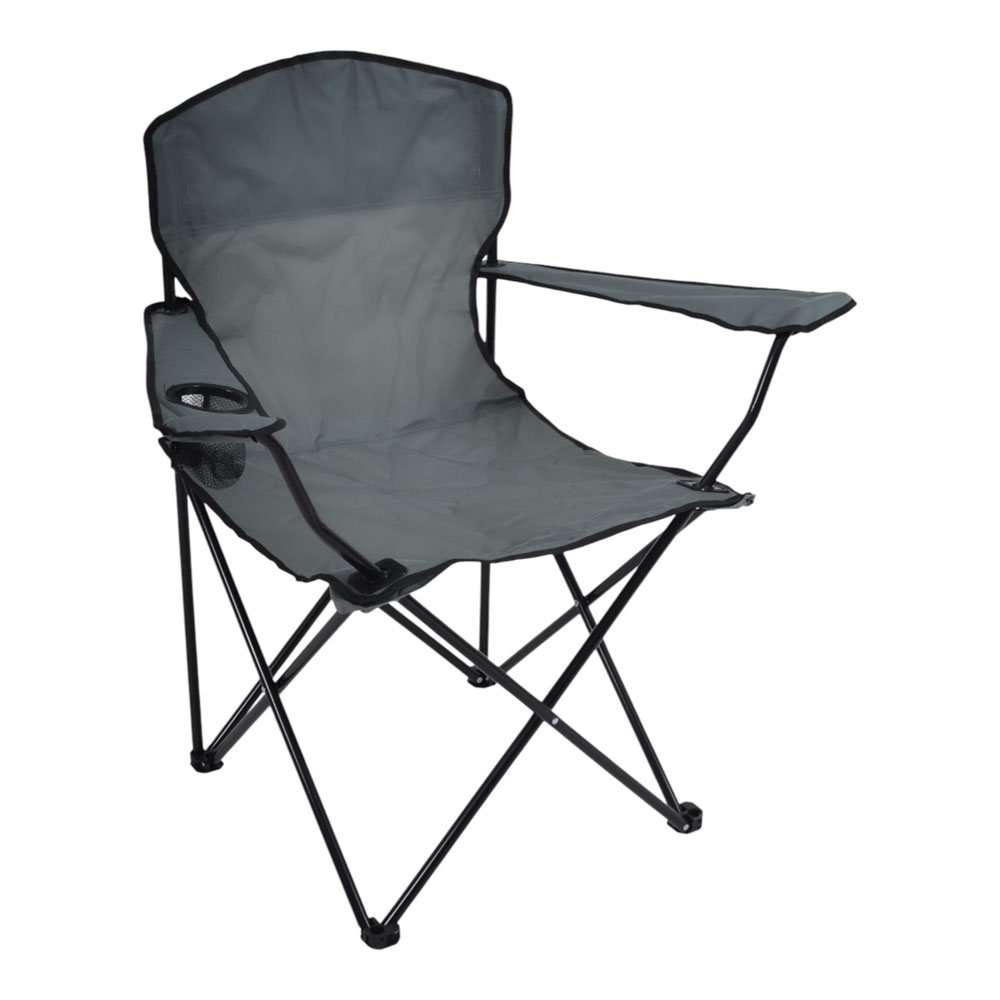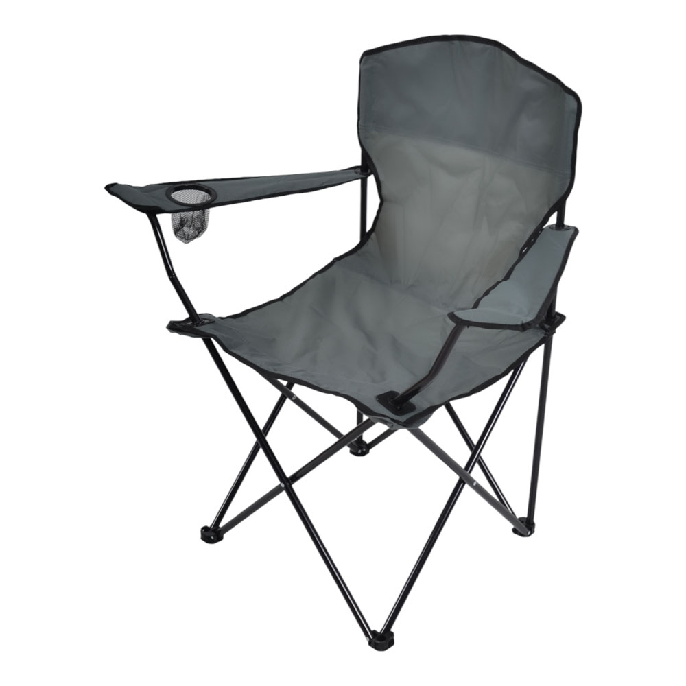 Πτυσσόμενη καρέκλα camping βαρέως τύπου με μεταλλικό σκελετό σε μαύρο χρώμα, ιδανική για κάμπινγκ, παραλία, ψάρεμα ή υπαίθριες δραστηριότητες. Ο ανθεκτικός σκελετός από σωλήνες διαμέτρου 16mm και πάχους 1.0mm προσφέρει υψηλή σταθερότητα και αντοχή στη χρήση, ενώ το ύφασμα Oxford 600D εξασφαλίζει ανθεκτικότητα και άνετο κάθισμα. Διαθέτει πρακτική θήκη για ποτήρι στο μπράτσο, ενώ διπλώνει εύκολα για μεταφορά και αποθήκευση.Συνοδεύεται από πολυεστερική τσάντα μεταφοράς