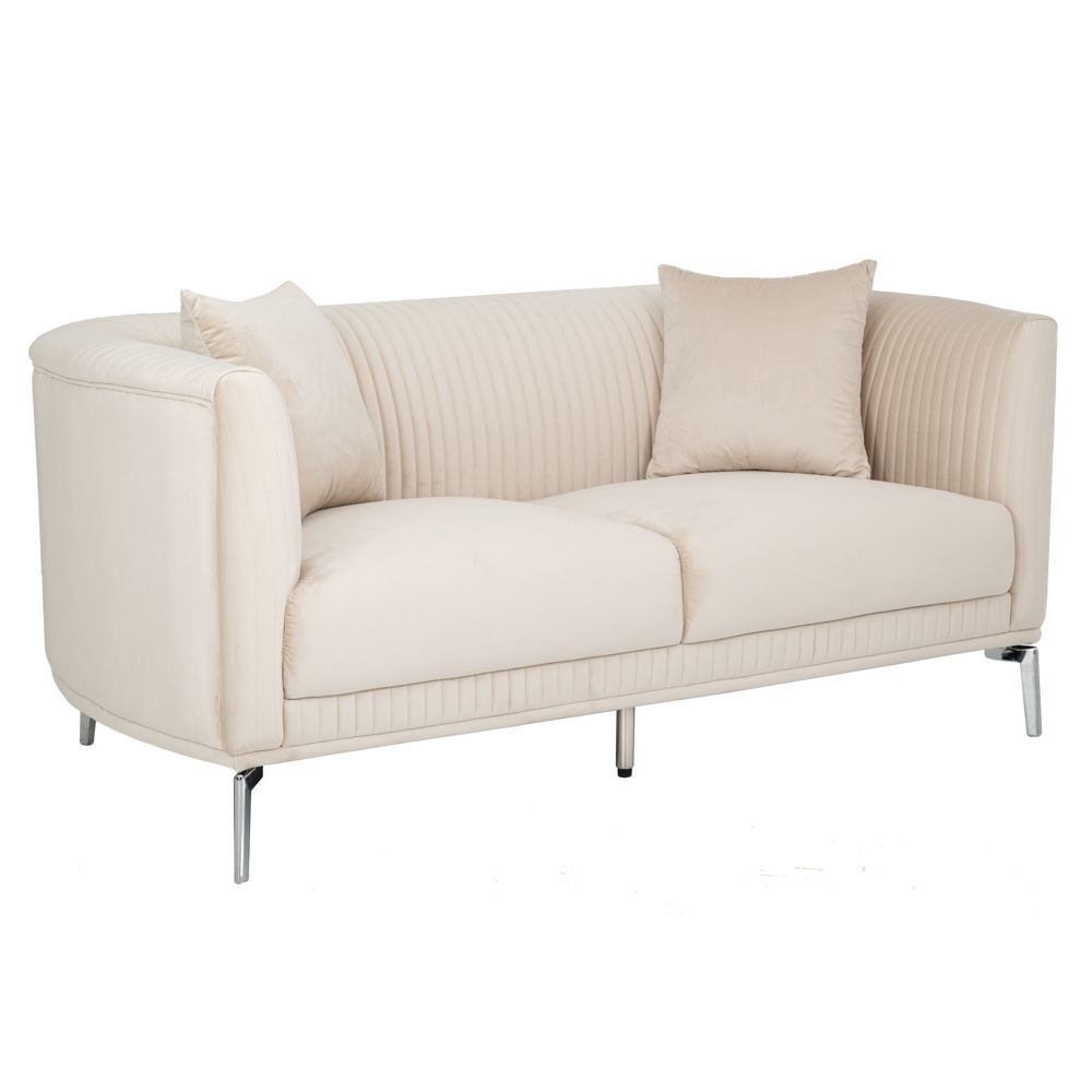 Διθέσιος καναπές σε κρεμ χρώμα διαστάσεων 170Χ96Χ73εκ. Διαθέτει μεταλλικό σκελετό με ασημένια πόδια τα οποία χρειάζονται συναρμολόγηση και είναι επενδυμένος με βελούδινο ύφασμα.