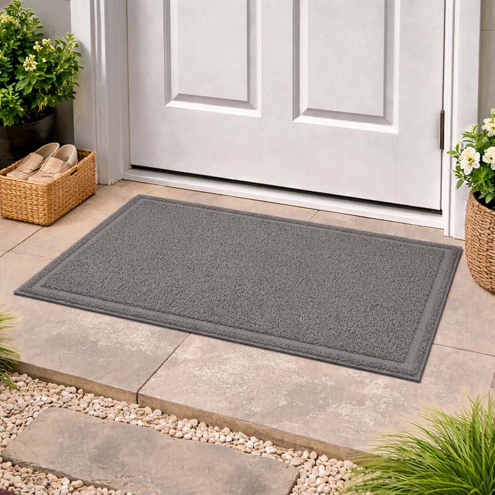 Πατάκι με αντιολισθητική βάση PVC, σε γκρι χρώμα. Είναι ανθεκτικό και απορροφητικό, στεγνώνει γρήγορα και παραμένει σταθερό χάρη στη βάση του, προσφέροντας ασφάλεια και άνεση.