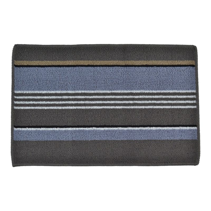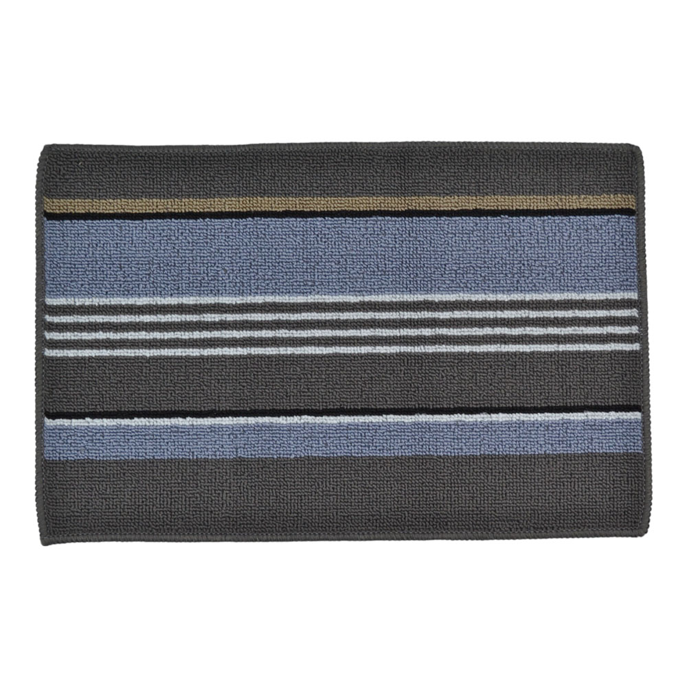 Πατάκι με αντιολισθητική βάση TPR, σε αποχρώσεις του γκρι και του μπλε, με σχέδιο οριζόντιες ρίγες. Μαλακό και απορροφητικό, στεγνώνει γρήγορα και παραμένει σταθερό χάρη στη βάση του, προσφέροντας ασφάλεια και άνεση.