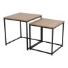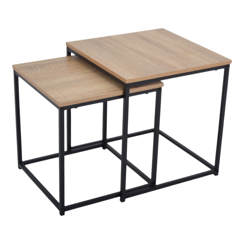 Σετ από 2 τραπέζια με ξύλινη επιφάνεια και μεταλλική μαύρη βάση. Τα τραπεζάκια είναι διαφορετικού μεγέθους που μπορούν να τοποθετηθούν μαζί ή ξεχωριστά. Ο μοντέρνος σχεδιασμός τους επιτρέπει να τοποθετούνται το ένα μέσα στο άλλο για εξοικονόμηση χώρου. Διάσταση μεγάλου: 45x45x45εκ.