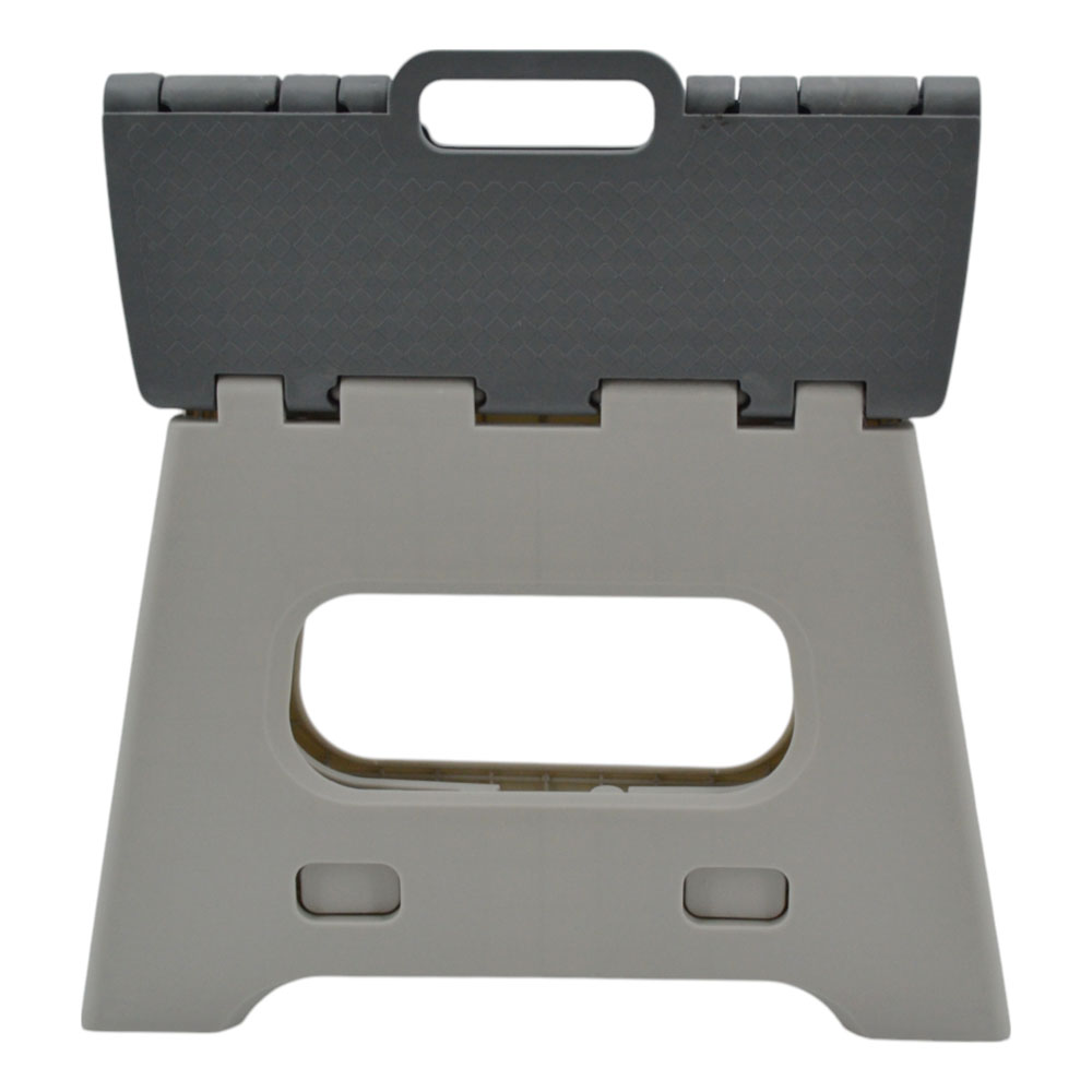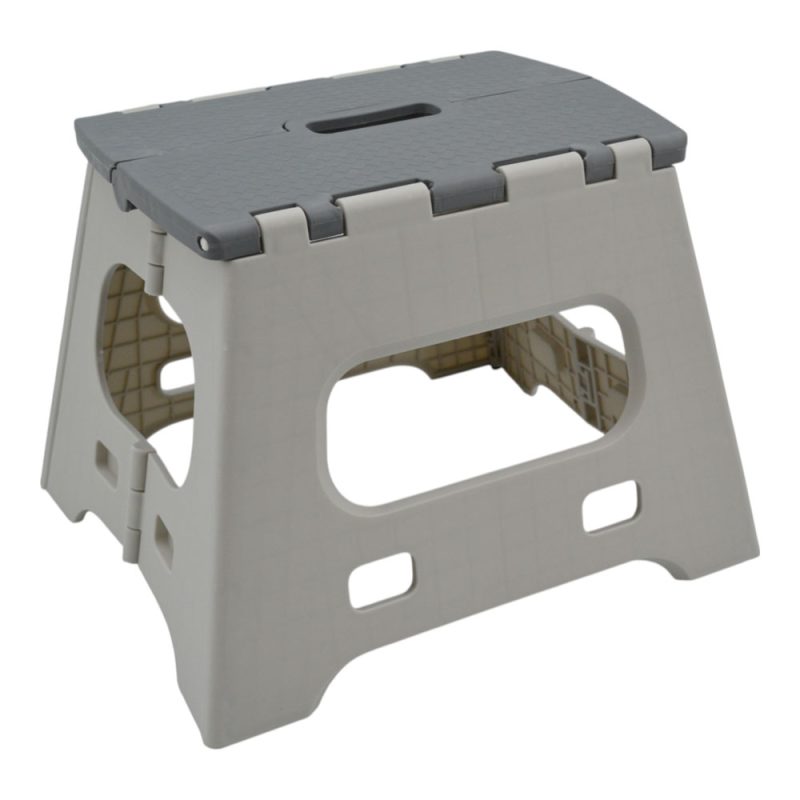 Πλαστικό αναδιπλούμενο σκαμπό σε γκρι απόχρωση, ιδανικό για χρήση στο σπίτι, στην κουζίνα ή σε εξωτερικούς χώρους. Στιβαρό και ανθεκτικό, διπλώνει εύκολα για εξοικονόμηση χώρου και διαθέτει χερούλι μεταφοράς για πρακτική αποθήκευση και μετακίνηση.