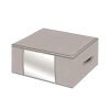 Κουτί αποθήκευσης υφασμάτινο, με φερμουάρ και διάφανο παράθυρο για εύκολη αναγνώριση του περιεχομένου. Διαθέτει πλαϊνές χειρολαβές για άνετη μεταφορά και είναι ιδανικό για την τακτοποίηση ρούχων ή λευκών ειδών, κρατώντας τον χώρο σας οργανωμένο.