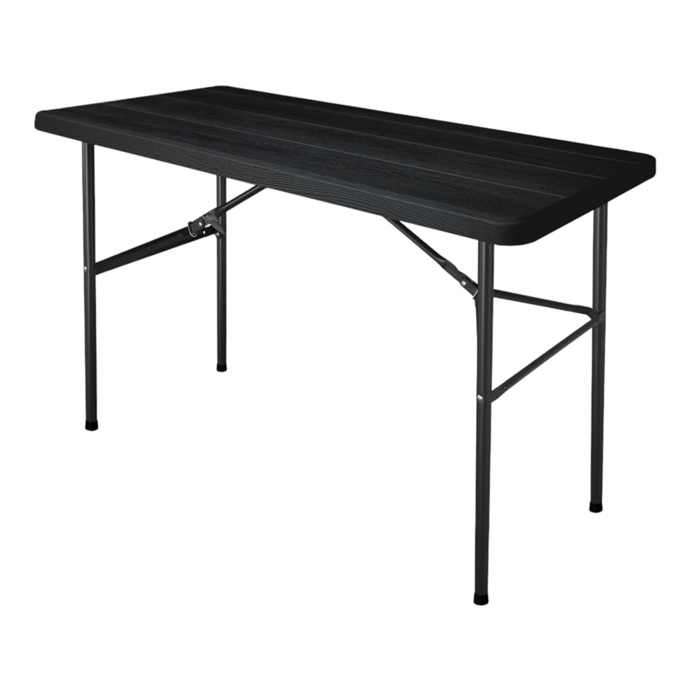 Τραπέζι πτυσσόμενο από υψηλής ποιότητας πλαστικό HDPE, ανθεκτικό σε υγρασία, φθορές και λεκέδες, με κομψή όψη ξύλου. Τα αναδιπλούμενα μεταλλικά πόδια με ηλεκτροστατική βαφή εξασφαλίζουν σταθερότητα και αντοχή στη σκουριά. Διαθέτει μαύρη πλαστική επιφάνεια με κομψή όψη ξύλου πάχους 40mm και μεταλλικά πόδια με σωλήνα διαμέτρου 25mm και πάχος 1,00mm. Ανθεκτικό, σταθερό και εύκολο στη μεταφορά. Είναι ιδανικό για οικιακή χρήση καθώς και για επαγγελματίες catering, εκδηλώσεις, χώρους εστίασης και εξωτερική χρήση.