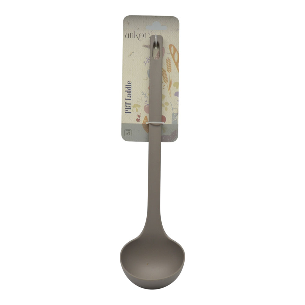 Βαθιά κουτάλα από πλαστικό υψηλής ποιότητας, ανθεκτική σε υψηλές θερμοκρασίες, δεν χαράζει αντικολλητικά σκεύη και δεν απορροφά οσμές. Ιδανική για καθημερινό σερβίρισμα, ελαφριά και εύκολη στο καθάρισμα, κατάλληλη και για πλυντήριο πιάτων. Το PBT είναι ένα πλαστικό υψηλής ποιότητας που χρησιμοποιείται ευρέως σε σκεύη κουζίνας και τρόφιμα.
